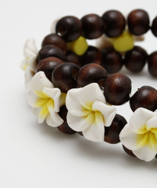 ウッドビーズとカラフルなプルメリアがかわいらしいブレスレット。