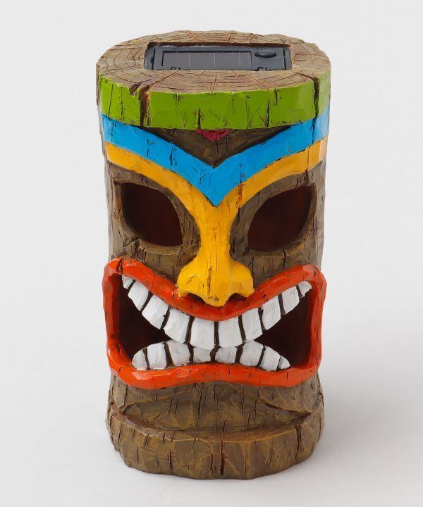 暗闇でティキが光るソーラーライト。玄関先に置くと一気にハワイアンテイストに。電源をオンにした状態で6時間以上太陽にあてていただくと、光る仕様になっています。