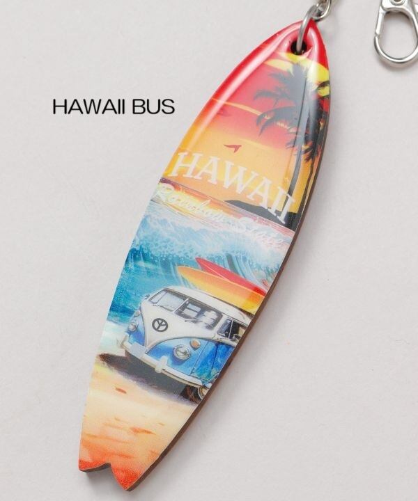 ウッド素材のキーホルダー。ハワイの景色を思い出せるようなデザインがプリントされています。ギフトにもおすすめです。