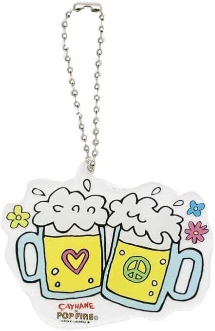 【Amina×POP FIREコラボ】ウシオダヒロアキ氏がチャイハネの為に描きおろした「ヒッピーファミリーの愉快なキャンプ」が描かれたキーホルダー。
