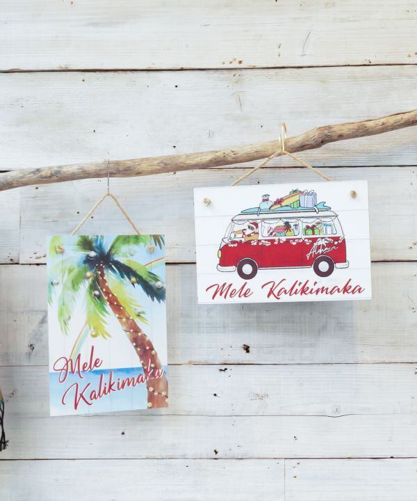 ハワイならではのクリスマスを描いたサインボード。壁にかければハワイアンクリスマス。色鮮やかなデザインで一気におうちがハワイアン気分に。