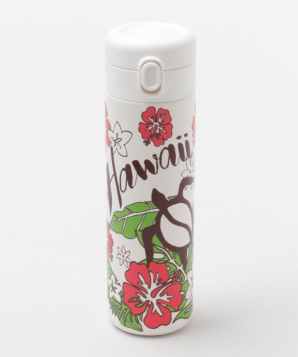 爽やかなプルメリア柄と海の守り神であるホヌをあしらった保冷ボトルでロコ気分に。ワンタッチで開閉できるからおでかけのお供にぴったり。